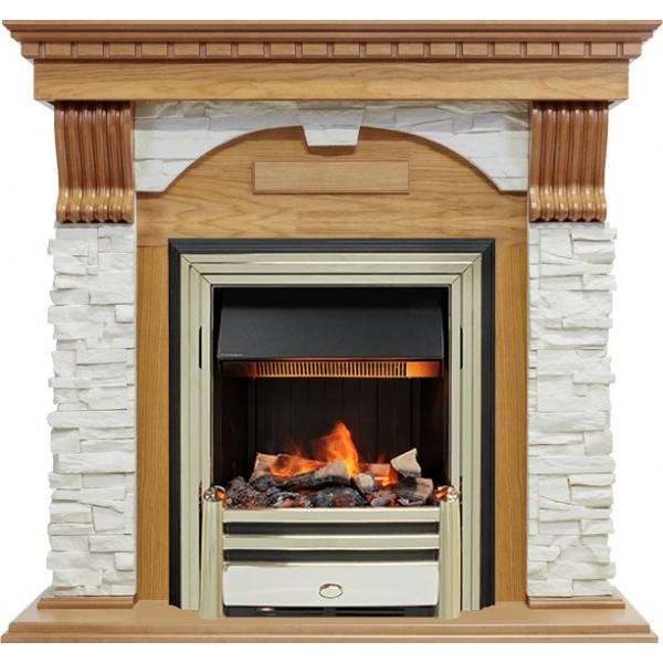 Каминокомплект Dublin - Дуб / Сланец белый с очагом Cavendish