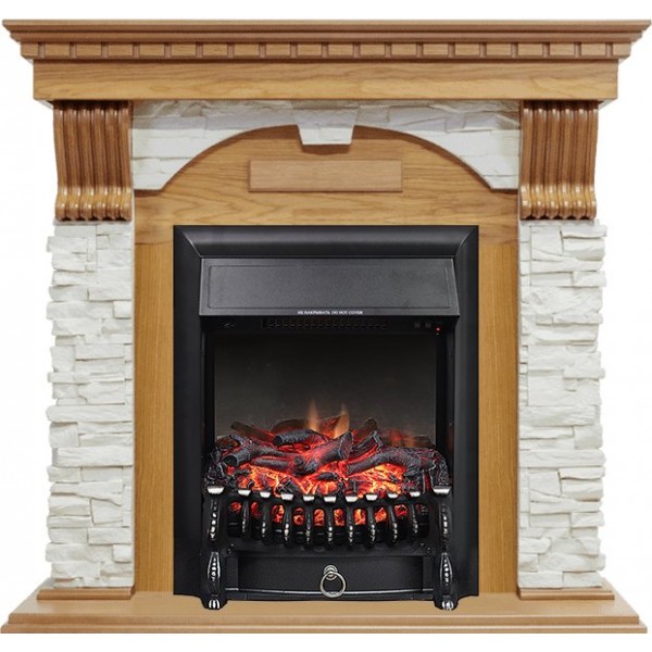 Каминокомплект Dublin - Дуб / Сланец белый с очагом Fobos FX Black