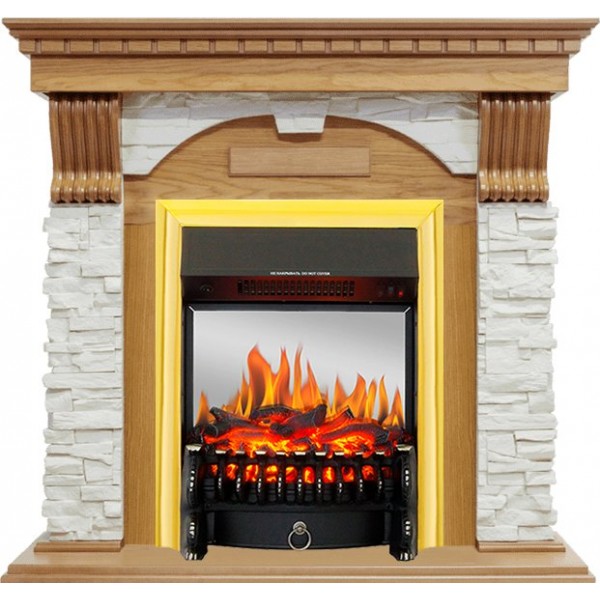 Каминокомплект Dublin - Дуб / Сланец белый с очагом Fobos FX M Brass
