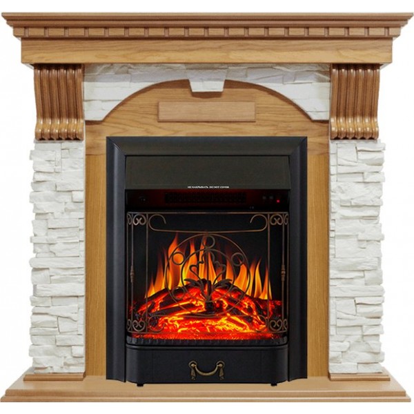 Каминокомплект Dublin - Дуб / Сланец белый с очагом Majestic FX Black