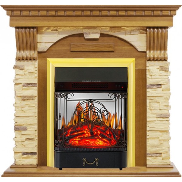 Каминокомплект Dublin - Дуб / Сланец с очагом Majestic FX M Brass