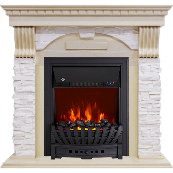 Каминокомплект Dublin - Слоновая кость с патиной / Сланец крем с очагом Aspen Black