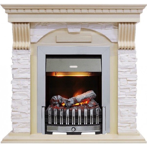 Каминокомплект Dublin - Слоновая кость с патиной / Сланец крем с очагом Danville Chrome FB2