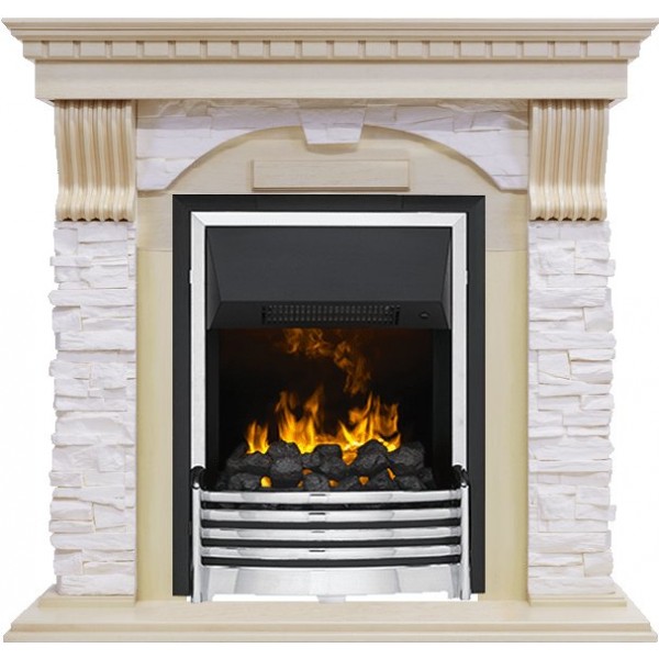 Каминокомплект Dublin - Слоновая кость с патиной / Сланец крем с очагом Flagstaff