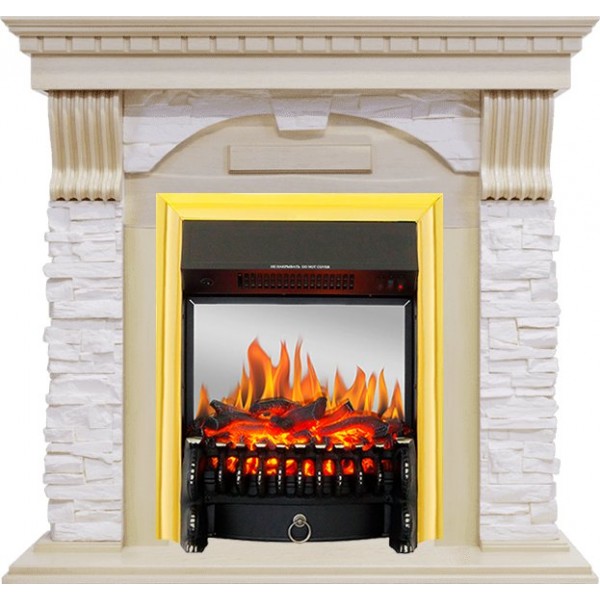 Каминокомплект Dublin - Слоновая кость с патиной / Сланец крем с очагом Fobos FX M Brass