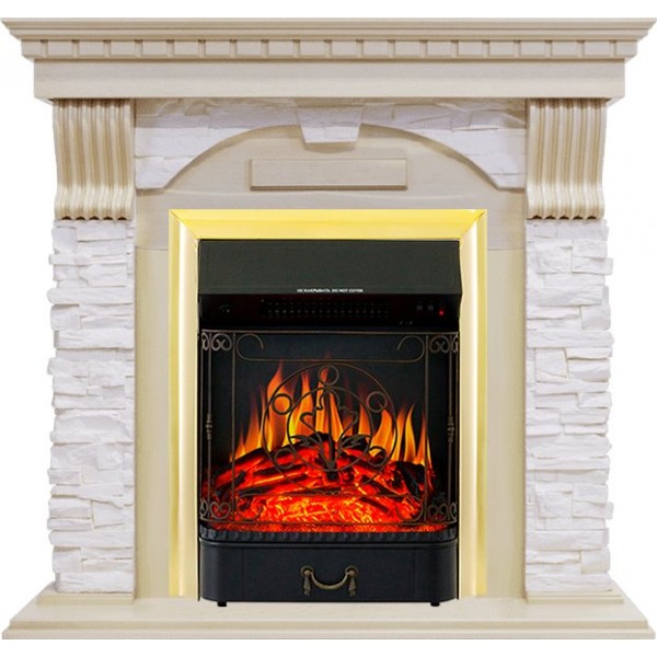 Каминокомплект Dublin - Слоновая кость с патиной / Сланец крем с очагом Majestic FX Brass