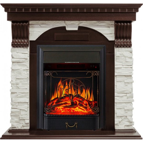 Каминокомплект Dublin - Темный дуб / Сланец белый с очагом Majestic FX Black