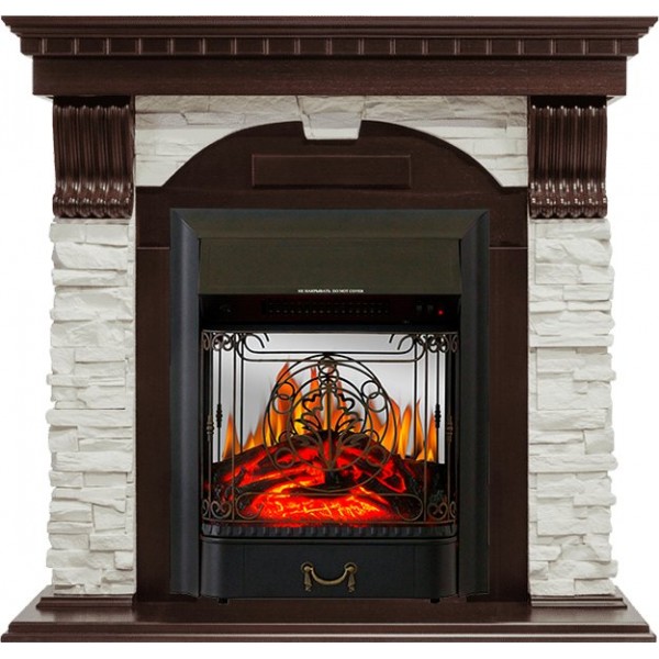 Каминокомплект Dublin угловой - Темный дуб / Сланец белый с очагом Majestic FX M Black