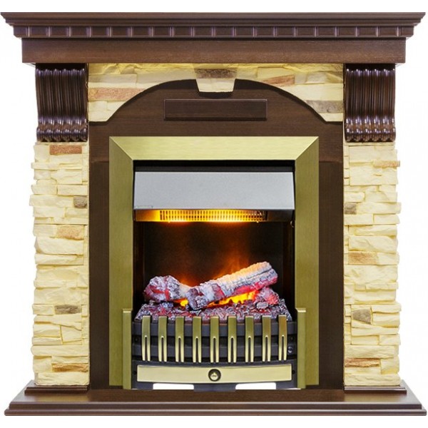 Каминокомплект Dublin угловой - Темный дуб / Сланец с очагом Danville Antique Brass FB2