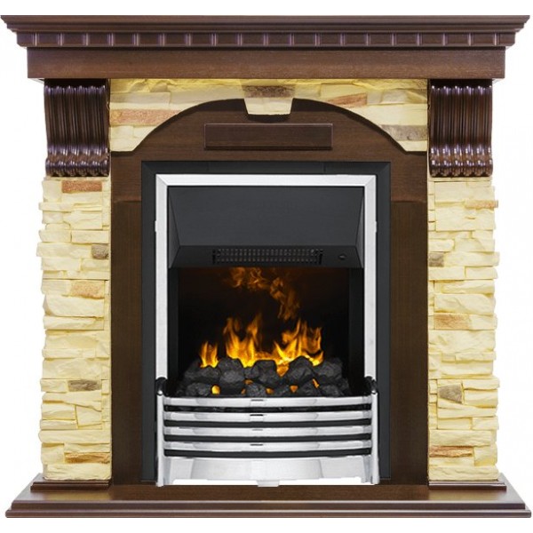 Каминокомплект Dublin угловой - Темный дуб / Сланец с очагом Flagstaff