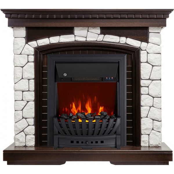 Каминокомплект Glasgow - Темный дуб / Белый с очагом Aspen Black
