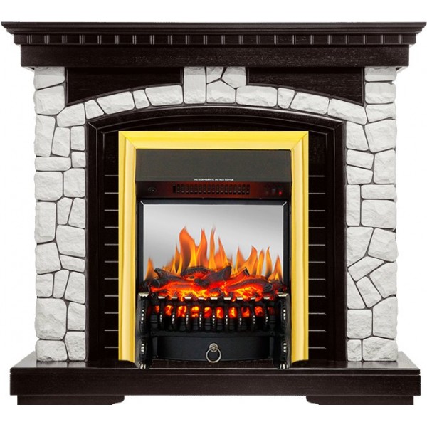 Каминокомплект Glasgow - Венге / Белый с очагом Fobos FX M Brass