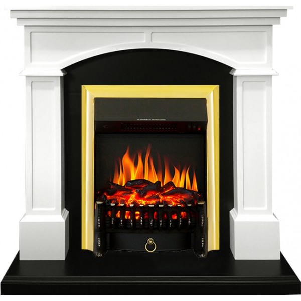 Каминокомплект Langford - Белый с черным с очагом Fobos FX Brass