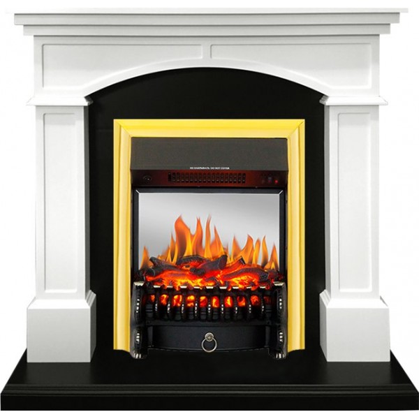 Каминокомплект Langford - Белый с черным с очагом Fobos FX M Brass