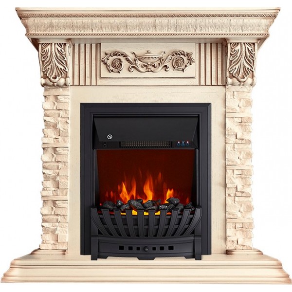 Каминокомплект Luxemburg (каменный) - Сланец/Cлоновая кость с патиной с очагом Aspen Black