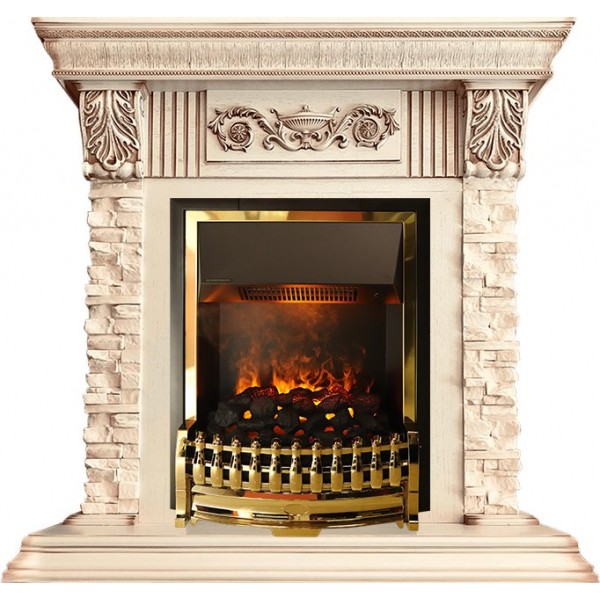 Каминокомплект Luxemburg (каменный) - Сланец/Cлоновая кость с патиной с очагом Atherton