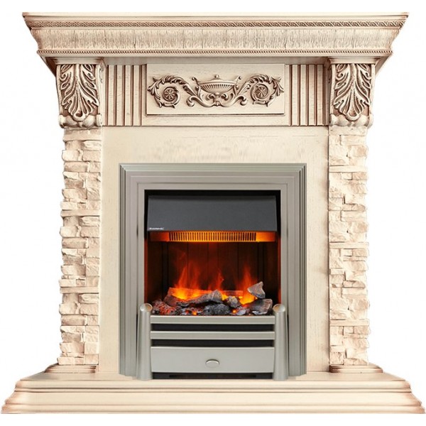 Каминокомплект Luxemburg (каменный) - Сланец/Cлоновая кость с патиной с очагом Chesford