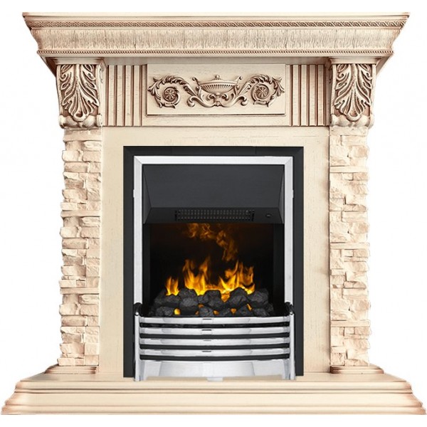Каминокомплект Luxemburg (каменный) - Сланец/Cлоновая кость с патиной с очагом Flagstaff