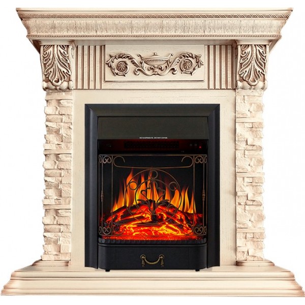 Каминокомплект Luxemburg (каменный) - Сланец/Cлоновая кость с патиной с очагом Majestic FX Black