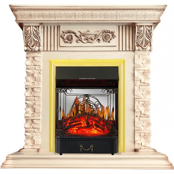 Каминокомплект Luxemburg (каменный) - Сланец/Cлоновая кость с патиной с очагом Majestic FX M Brass