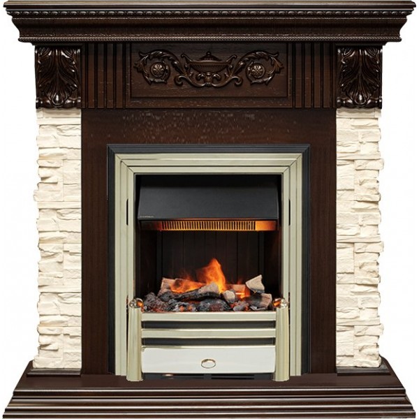 Каминокомплект Luxemburg (каменный) - Сланец/Темный дуб с очагом Cavendish
