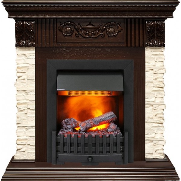 Каминокомплект Luxemburg (каменный) - Сланец/Темный дуб с очагом Danville Black FB2
