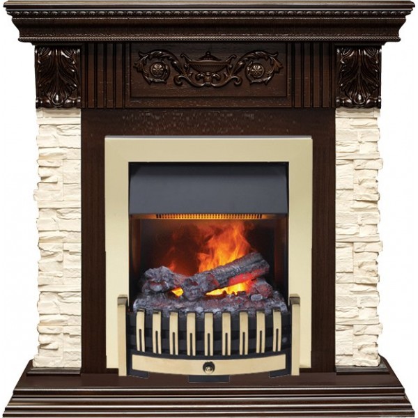 Каминокомплект Luxemburg (каменный) - Сланец/Темный дуб с очагом Danville Brass FB2