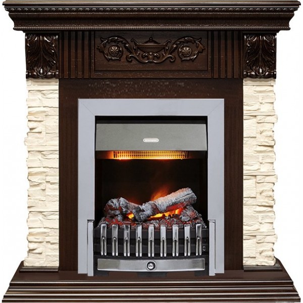 Каминокомплект Luxemburg (каменный) - Сланец/Темный дуб с очагом Danville Chrome FB2