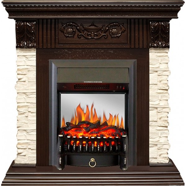 Каминокомплект Luxemburg (каменный) - Сланец/Темный дуб с очагом Fobos FX M Black