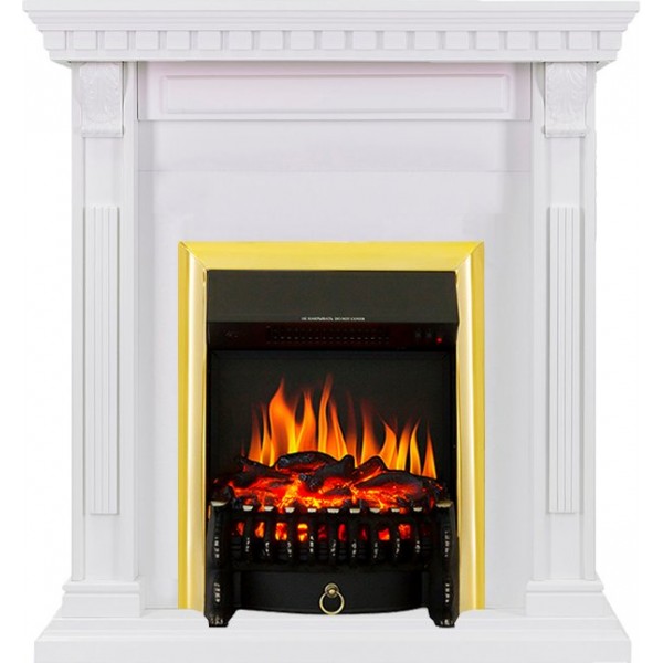 Каминокомплект Orlean - Белый с очагом Fobos FX Brass
