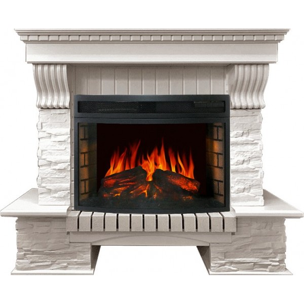 Каминокомплект Pierre Luxe Белый / Сланец белый с очагом Dioramic 25 LED FX