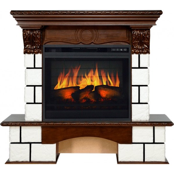 Каминокомплект Pierre Luxe - Белый / Темный дуб с очагом Vision 23 EF LED 3D FX