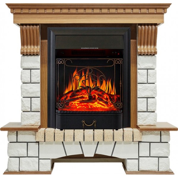 Каминокомплект Pierre Luxe - Дуб / Белый с очагом Majestic FX Black