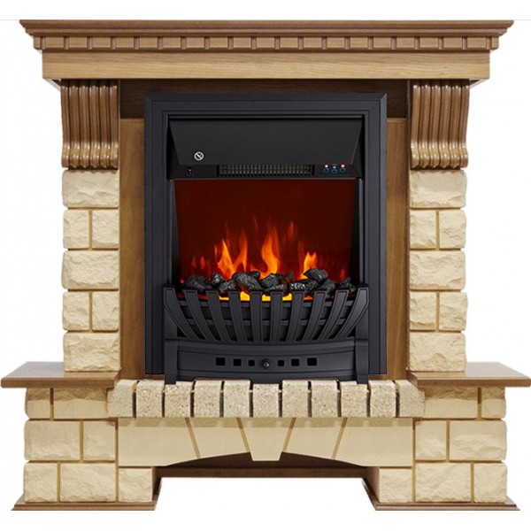 Каминокомплект Pierre Luxe - Дуб / Шампань с очагом Aspen Black