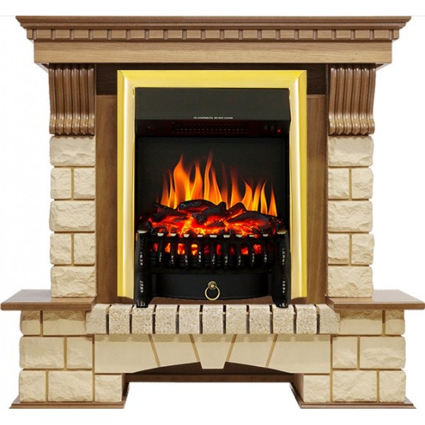 Каминокомплект Pierre Luxe - Дуб / Шампань с очагом Fobos FX Brass