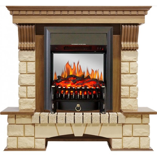 Каминокомплект Pierre Luxe - Дуб / Шампань с очагом Fobos FX M Black