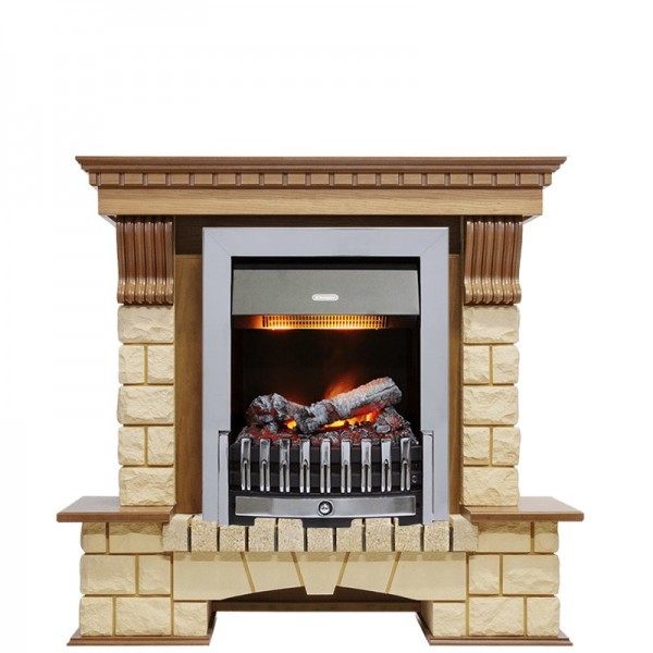 Каминокомплект Pierre Luxe - Дуб / Шампань (Высота 1050мм) с очагом Danville Chrome FB2