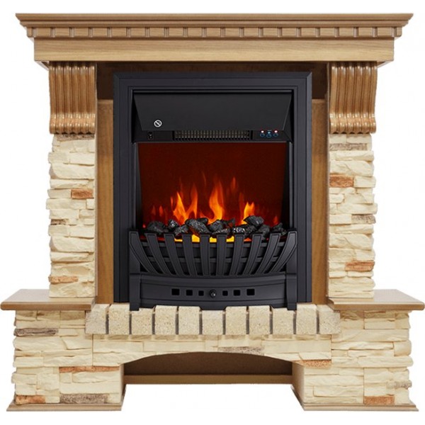 Каминокомплект Pierre Luxe - Дуб / Сланец с очагом Aspen Black