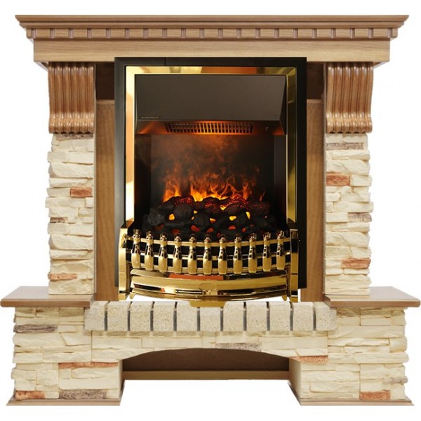 Каминокомплект Pierre Luxe - Дуб / Сланец с очагом Atherton