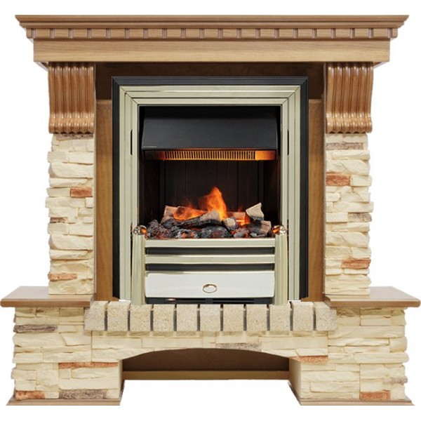Каминокомплект Pierre Luxe - Дуб / Сланец с очагом Cavendish