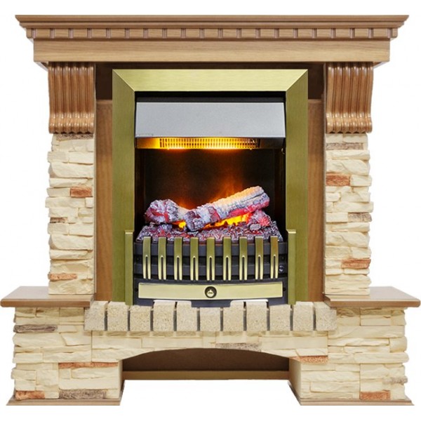 Каминокомплект Pierre Luxe - Дуб / Сланец с очагом Danville Antique Brass FB2