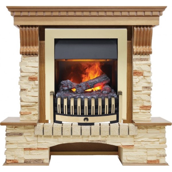 Каминокомплект Pierre Luxe - Дуб / Сланец с очагом Danville Brass FB2