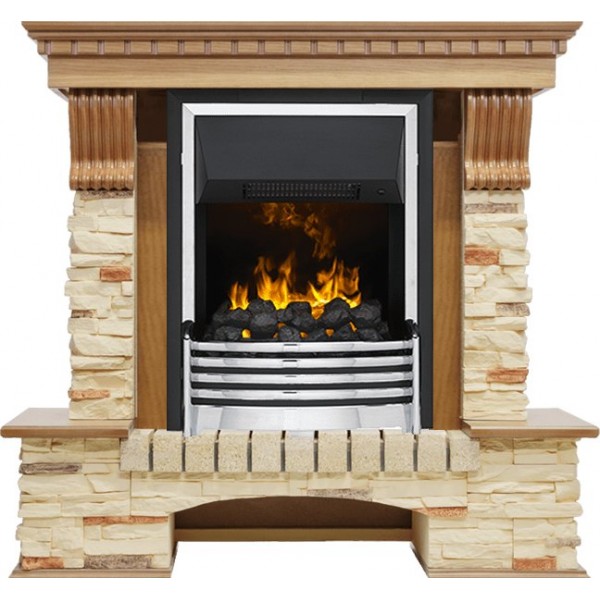 Каминокомплект Pierre Luxe - Дуб / Сланец с очагом Flagstaff