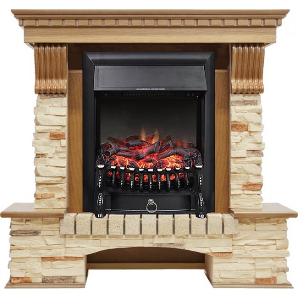 Каминокомплект Pierre Luxe - Дуб / Сланец с очагом Fobos FX Black