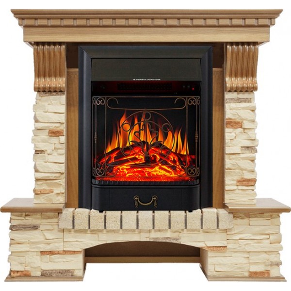 Каминокомплект Pierre Luxe - Дуб / Сланец с очагом Majestic FX Black