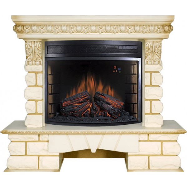 Каминокомплект Pierre Luxe LORD - Слоновая кость / Белый с очагом Dioramic 28 LED FX