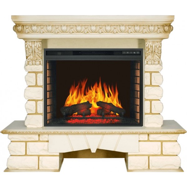 Каминокомплект Pierre Luxe LORD - Слоновая кость / Белый с очагом Vision 28 EF LED FX