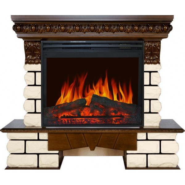 Каминокомплект Pierre Luxe LORD - Темный дуб / Белый с очагом Jupiter FX New