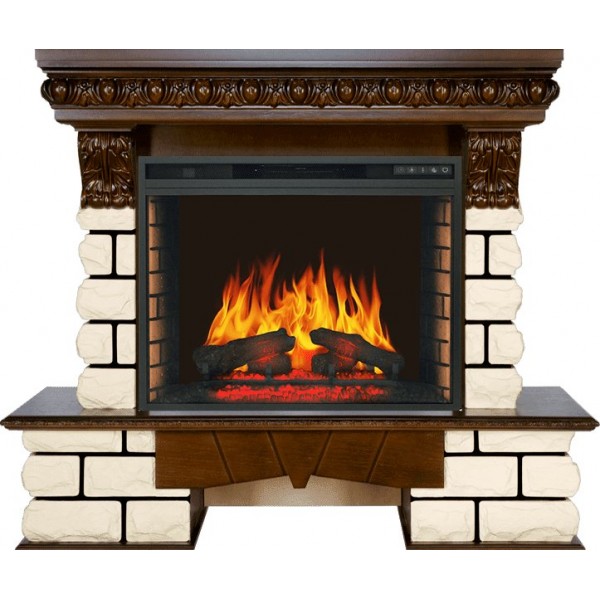 Каминокомплект Pierre Luxe LORD - Темный дуб / Белый с очагом Vision 28 EF LED FX