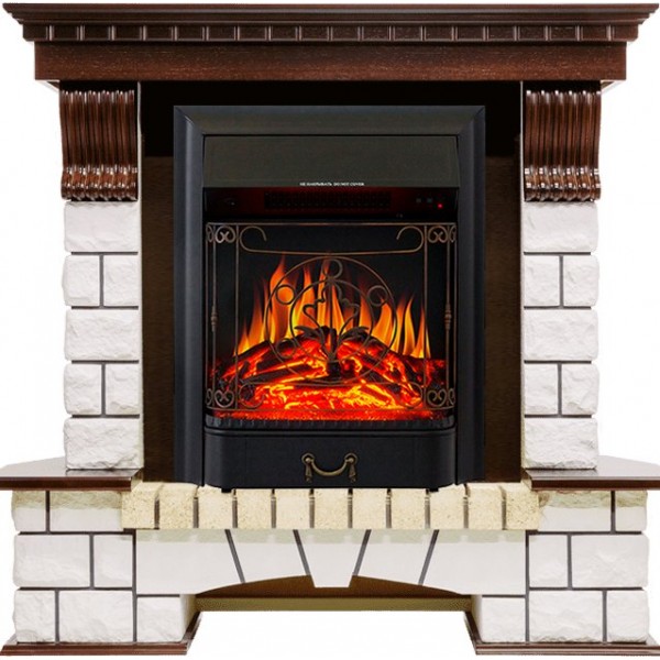 Каминокомплект Pierre Luxe - Темный дуб / Белый с очагом Majestic FX Black
